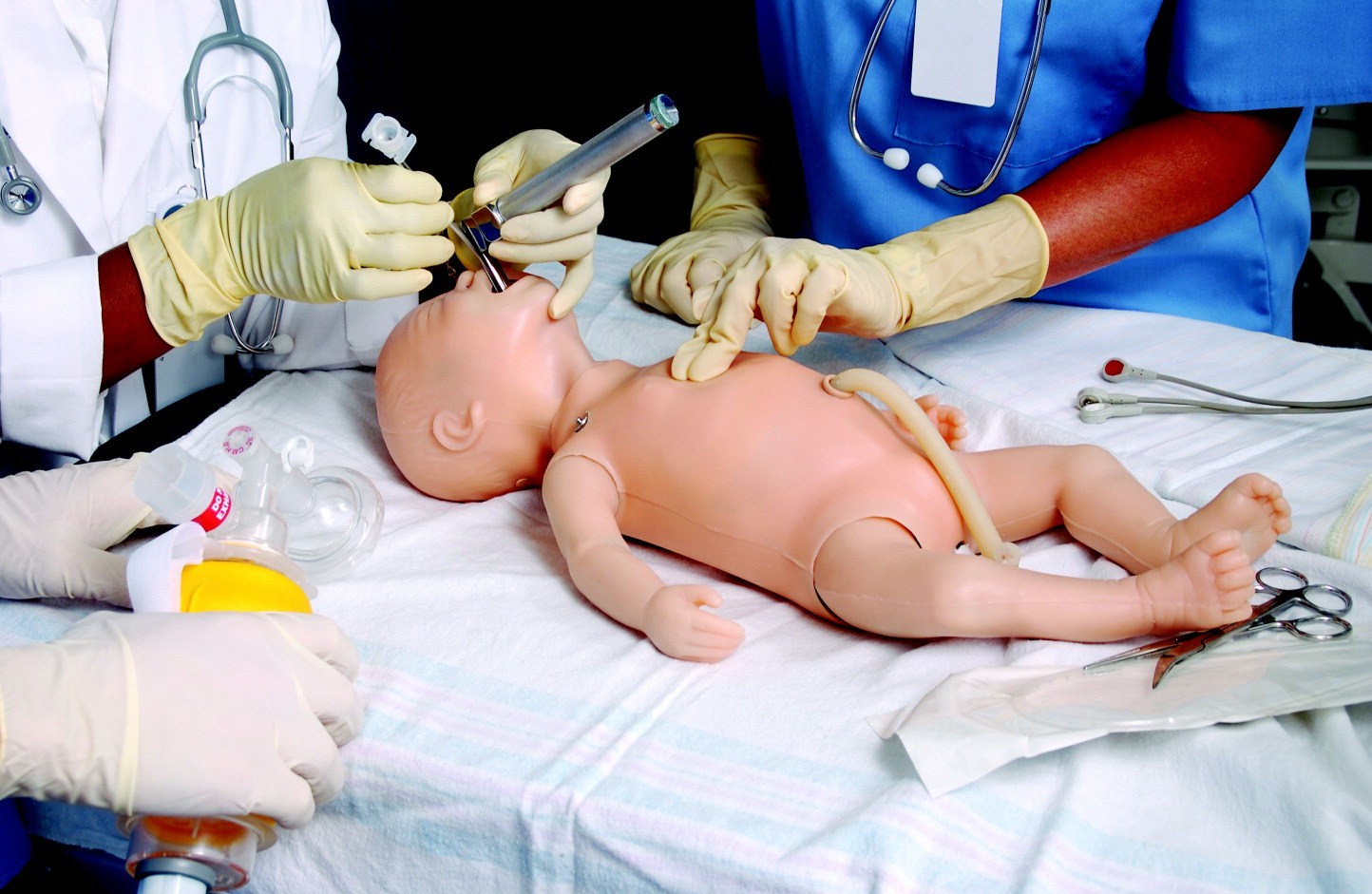 SimNewB allows students to practice on a wide range of neonatal skills within a realistic simulation environment. The airways were designed to allow training in all aspects of newborn airway management, including the use of positive pressure breathing devices and ET and LMA tube placement.
